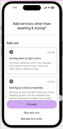This system will be public and shared by all tenants in the building. While we aim to provide the best experience by offering sorting, cleaning, folding, and even scent-enhancing services, we recognize that some people are less concerned with the specifics of their laundry process. Therefore, the product must ensure flexibility for all users. It should be as easy to opt out of certain services as it is to add them.