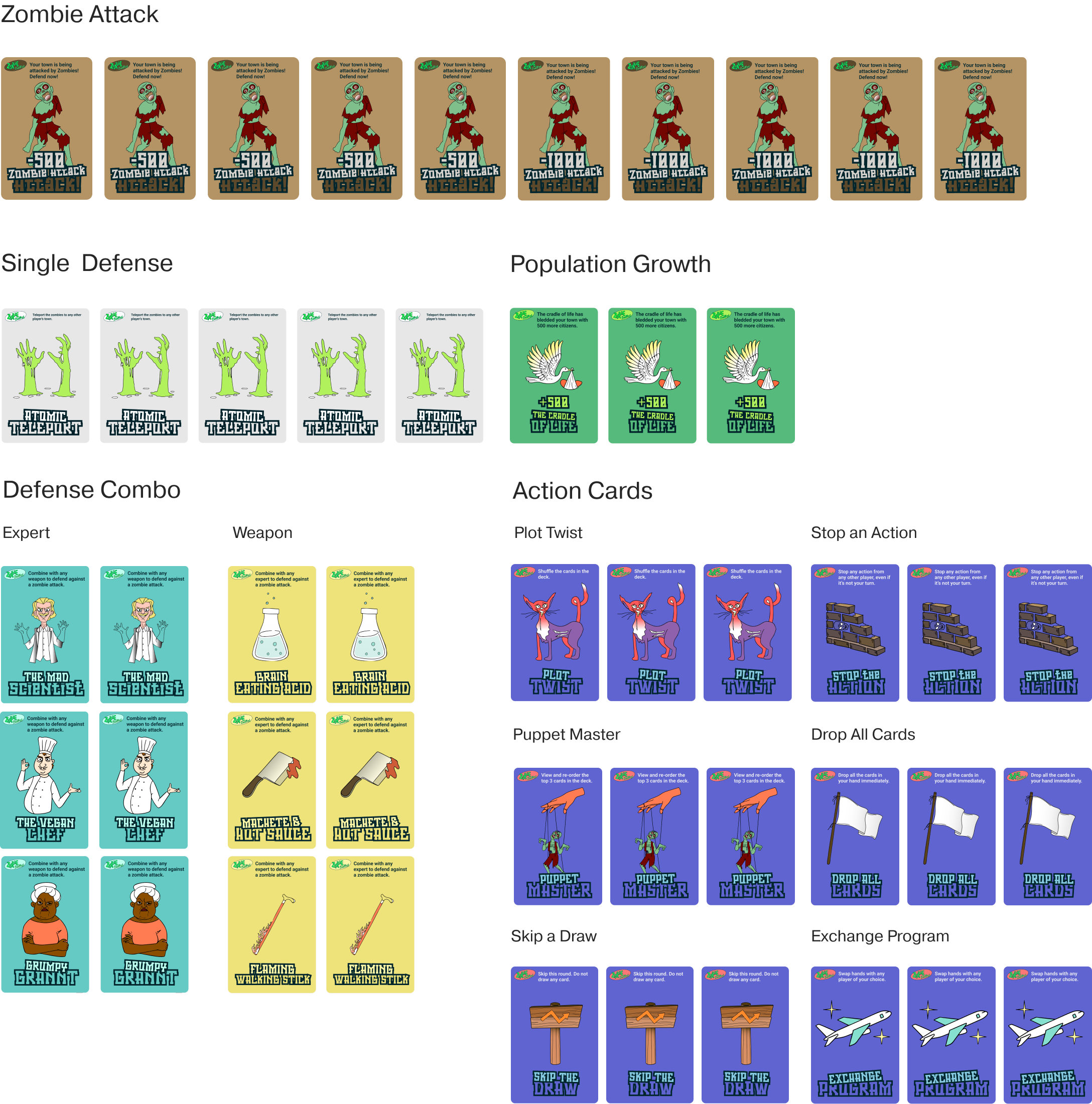 Each town(represented by a player) starts with a population of 2000 people. You play by taking turns drawing cards from a deck.